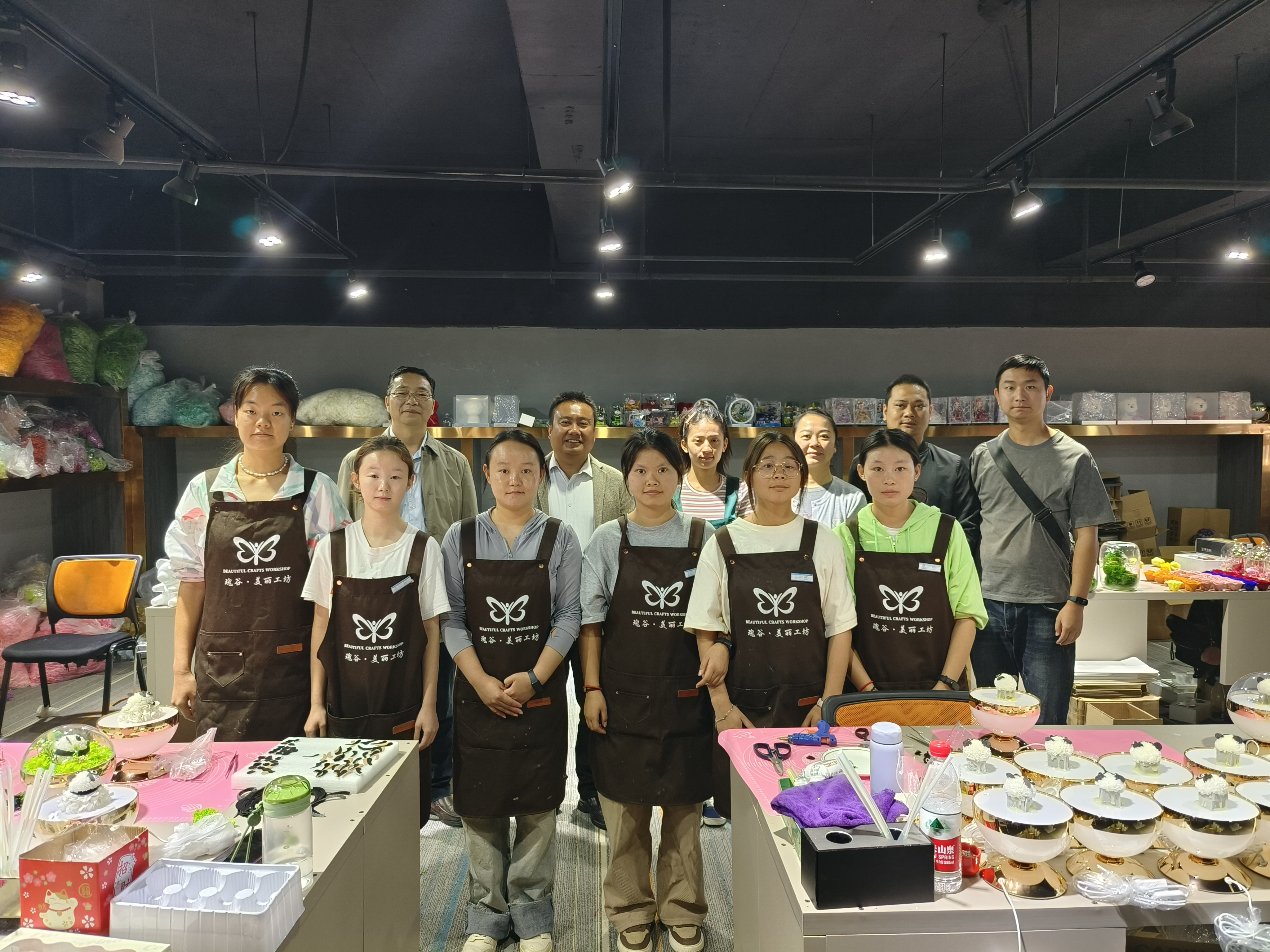 走访组与瑰谷花卉美丽工坊实习听障学生合影